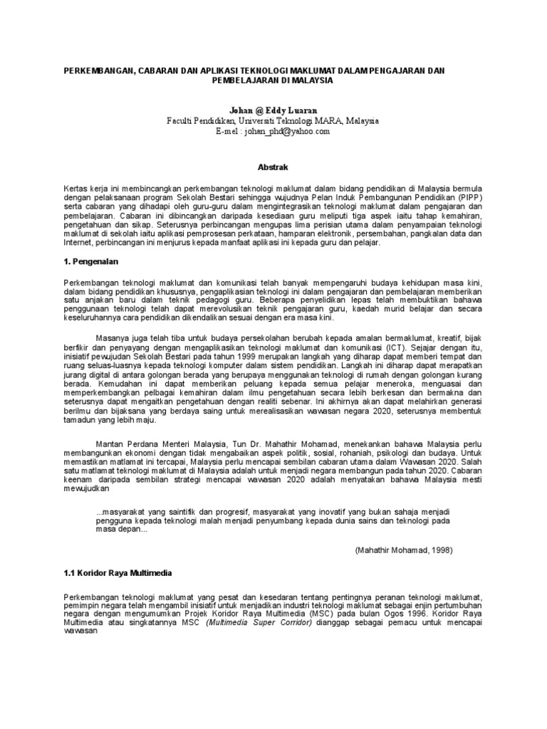 Perkembangan Cabaran Dan Aplikasi Teknologi Maklumat Dalam Pengajaran Dan Pembelajaran Di Malaysia Pdf